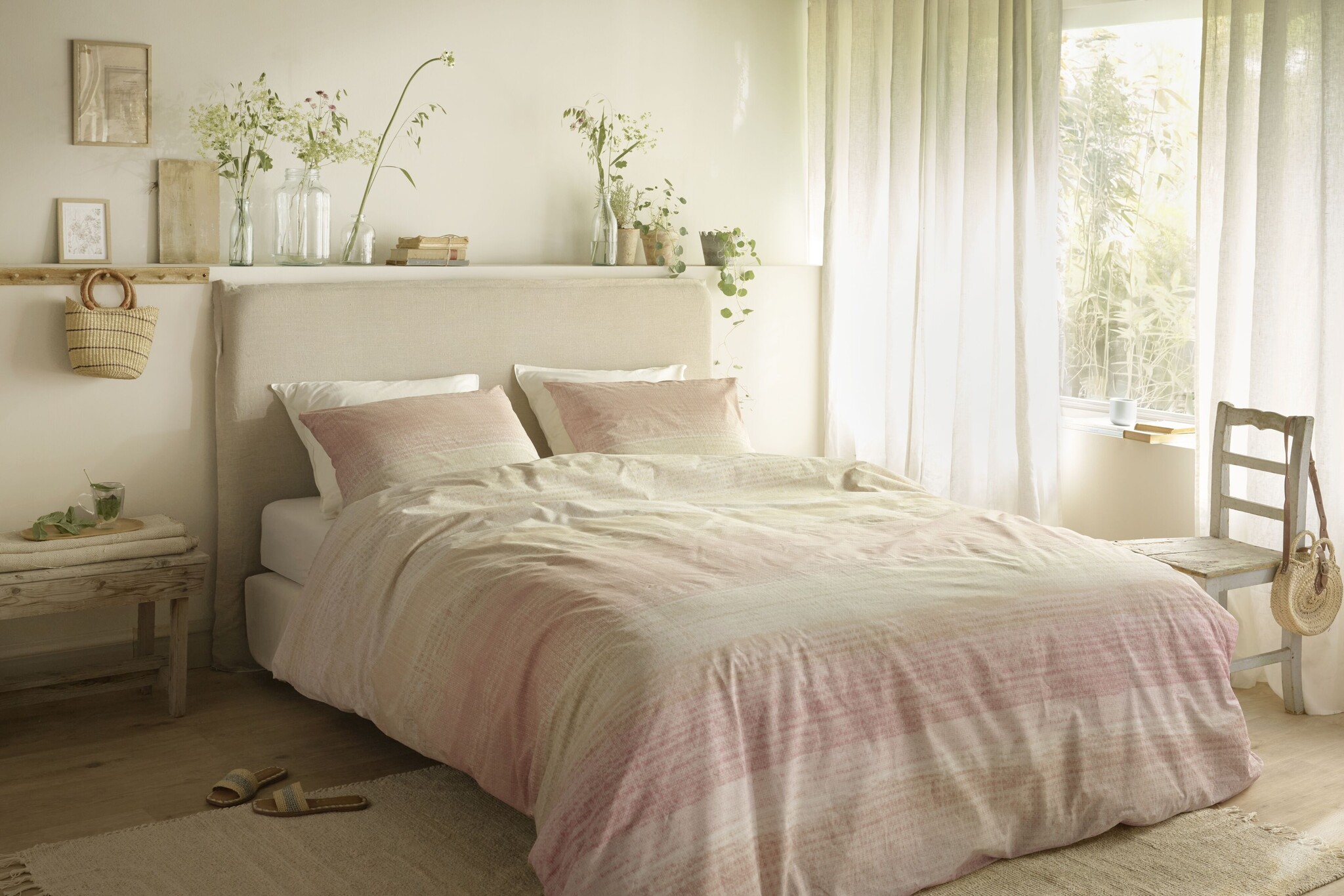 - Veelzijdige styling: Het beige en roze kleurenschema en het subtiele dessin maken dit dekbedovertrek makkelijk te combineren met spreien, sierkussen en andere accessoires.