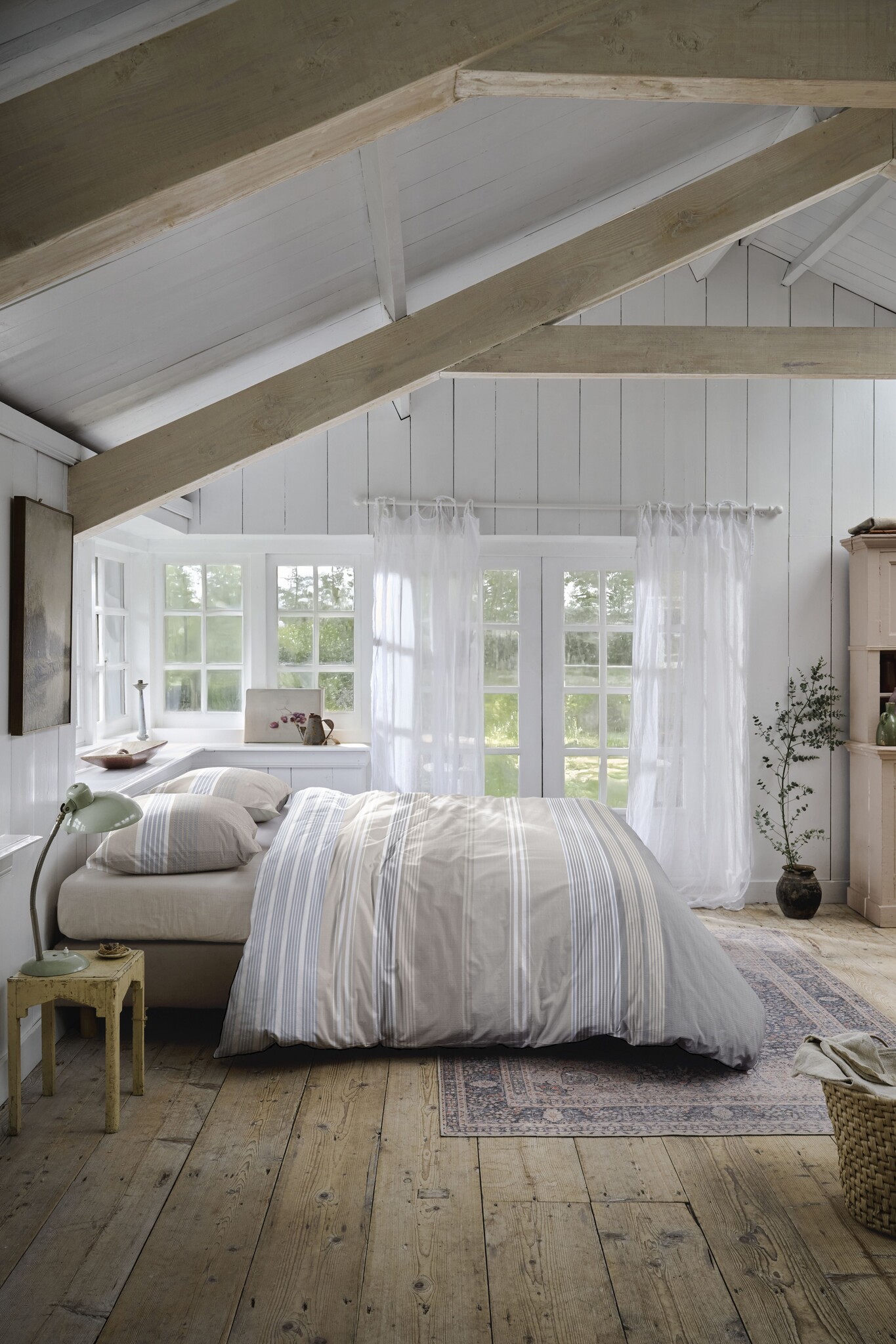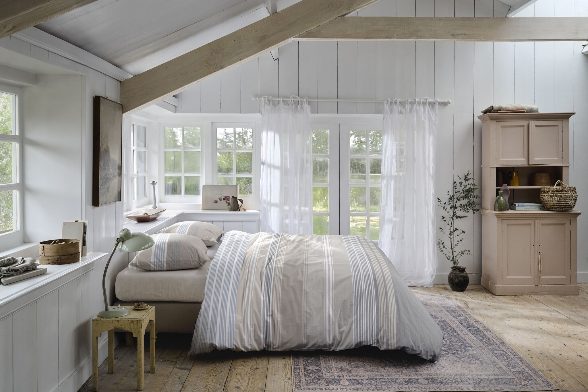 - Gebruik bijpassende kussenslopen en sierkussens om een rustige, gelaagde uitstraling te creëren.