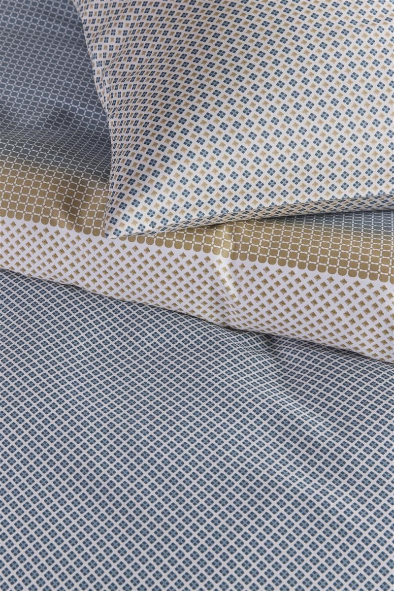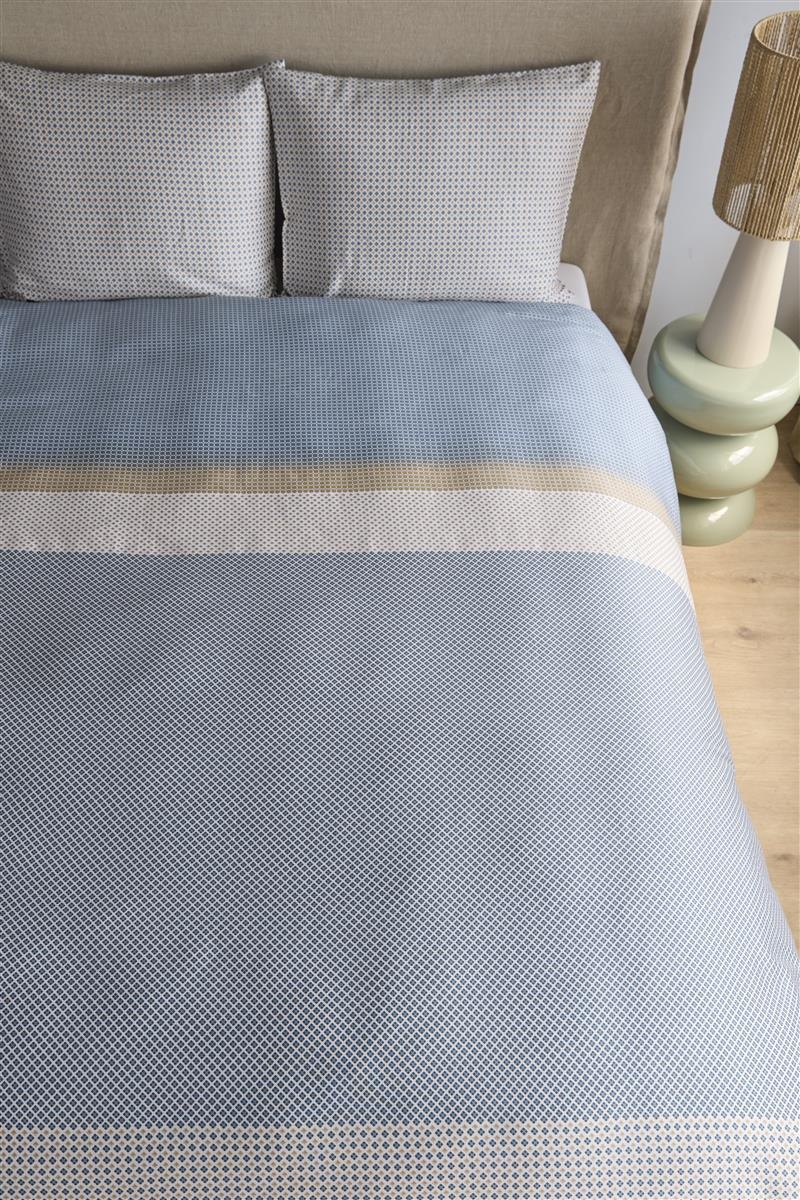 De unieke eigenschappen van dit dekbedovertrek maken het een must-have voor iedereen die waarde hecht aan kwaliteit en design. Gemaakt van katoen-satijn, biedt het een zijdezachte textuur die niet alleen comfortabel aanvoelt, maar ook duurzaam is. Het grafische dessin in een rustgevende blauwe kleur voegt een moderne en verfijnde uitstraling toe aan uw slaapkamer.