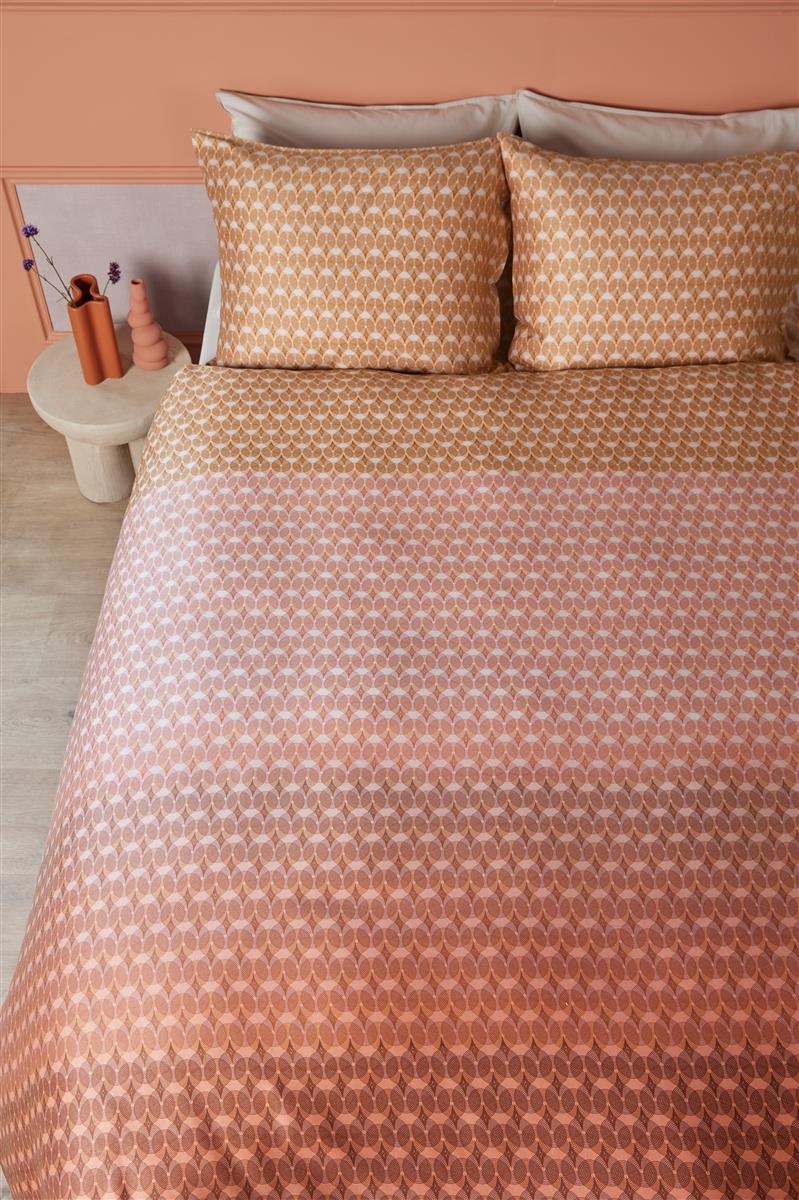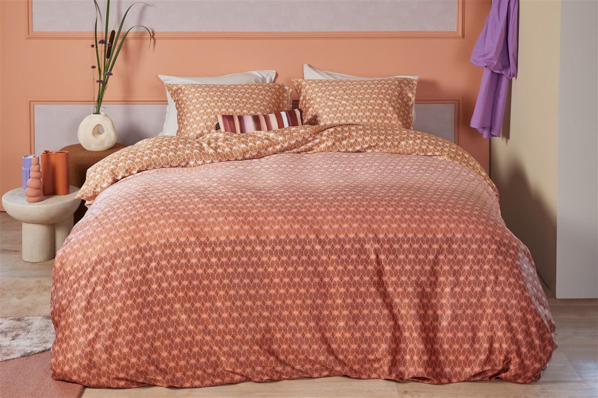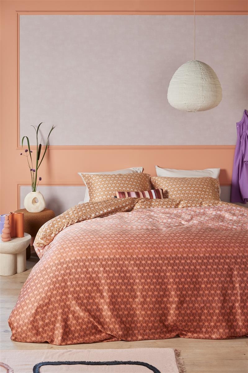 Het grafische dessin van de Silas Terra voegt een moderne touch toe aan uw slaapkamer. De rijke rode kleur brengt warmte en sfeer, terwijl het subtiele ontwerp gemakkelijk te combineren is met andere bedtextiel producten zoals hoeslakens, kussens en spreien. Maak uw slaapervaring compleet met bijpassende badjassen, handdoeken en badmatten voor een harmonieus geheel.