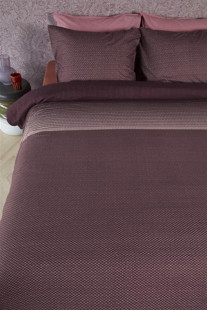 Dekbedovertrek Demi van Beddinghouse heeft een moderne, tijdloze uitstraling. Het banendessin bestaat uit een subtiel lijnenpatroonop een ondergrond met stofstructuur. De banen die zijn afgebeeld hebben een subtiel kleurverloop in roodtinten. Het dekbedovertrek is gemaakt van flanel. Deze warme winterkwaliteit zorgt ervoor dat je heerlijk wegdroomt tijdens de koude wintermaanden. Met dit overtrek kun je energie besparen, als je de thermostaat lager zet lig je er nog heerlijk warm bij met dit flanellen dekbedovertrek. Dit overtrek is beschikbaar in meerdere kleurstellingen. Duurzame verpakking Het dekbedovertrek is mooi en duurzaam verpakt in een stoffen tasje gemaakt van hetzelfde materiaal als het overtrek. Je kunt het tasje eenvoudig hergebruiken. Over Beddinghouse Ieder seizoen brengt het merk Beddinghouse stories die aansluiten bij de laatste trends op het gebied van kleur en interieur. Iedere story heeft een unieke stijl en bijbehorende kleurstelling. Wist u dat kleur uw stemming, gevoelens en emoties drastisch kunnen beïnvloeden? Dit heeft een effect op ons leven, ons lichaam en onze gemoedsrust. Kies de kleur en stijl die het beste bij je past. Hoogwaardige kwaliteit Het dekbedovertrek is gemaakt van een zeer zachte flanel, 100% katoen. Voor dit dekbedovertrek zijn dikke garens gebruikt die zacht zijn gebrushed waardoor het overtrek heel zacht, dik en warm aanvoelt. Een flanellen dekbedovertrek is bijzonder geschikt voor de koude winternachten. Het dekbedovertrek heeft over de gehele breedte aan beide zijden een dubbele instopstrook. De totale lengte van het overtrek is 260 cm. Dit is extra lang waardoor het dekbedovertrek gemakkelijk onder het matras gestopt kan worden en koude voeten worden voorkomen. Het overtrek is geschikt voor dekbedden van 200 cm, 210 cm of 220 cm.