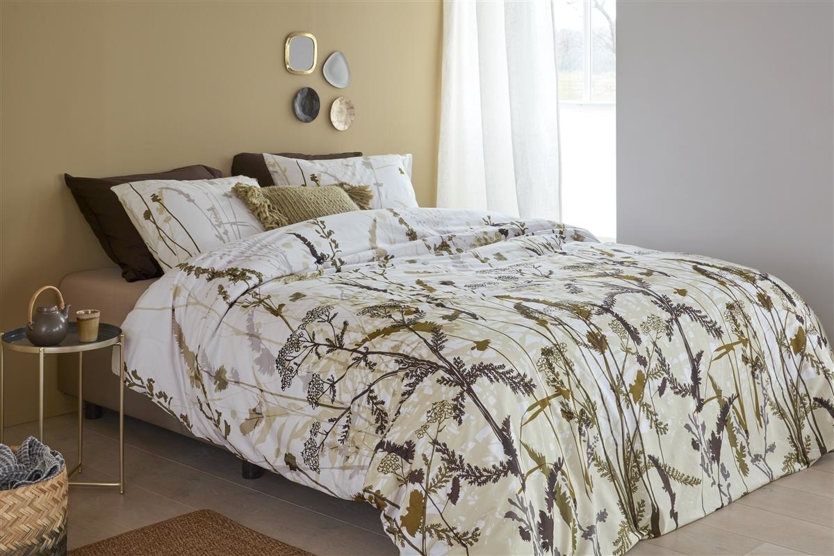Het botansiche dekbedovertrek Grasses past perfect in een romantische en eigentijdse slaapkamer. Verschillende handgetekende silhouetten van grassen zijn transparant over elkaar heen geplaatst op een witte ondergrond. Grassen in lichte tinten worden afgewisseld met grassen in stevigere tinten.