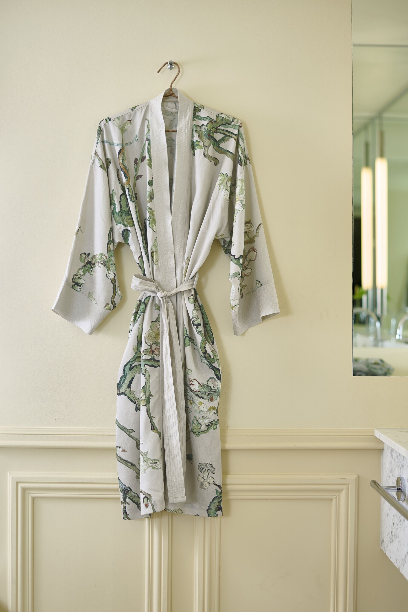 Deze exclusieve samenwerking tussen Beddinghouse en het Van Gogh Museum maakt deze kimono bijzonder. Het Almond Blossom-design geeft je dagelijkse routine een artistieke touch, terwijl de klassieke kimono-snede zorgt voor bewegingsvrijheid en tijdloze elegantie. Of je zoekt naar een dames badjas met karakter of een chique unisex badjas, dit model voelt zacht aan en geeft een luxueuze uitstraling. Bovendien sluit de kimono naadloos aan bij een volledig verzorgde slaapkamer- en badkamerstijl: denk aan bijpassende sprei, handdoek en kussens.