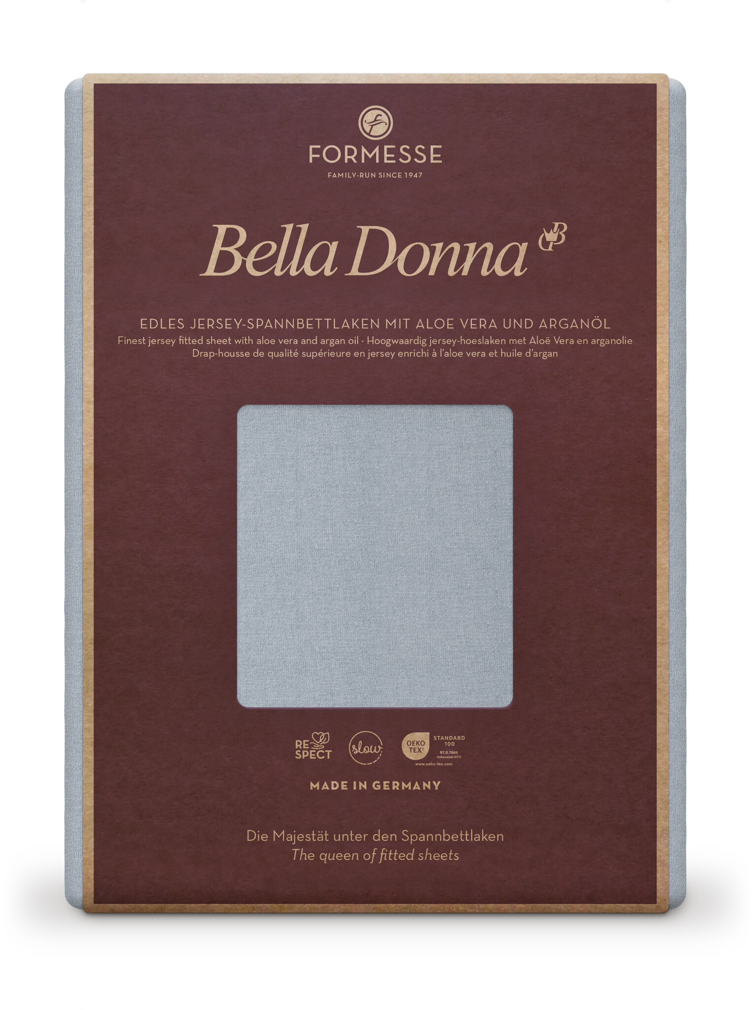 Bella Donna hoeslakens zijn gemaakt van 97% langvezelig katoen, 3% elasthaan, aloë vera & zijdeproteïne. Natuurlijk getest volgens ÖkoTex-norm 100, gecertificeerd met het keurmerk “Textiles Vertrauen” en gemaakt in Duitsland: “Made in Germany”.