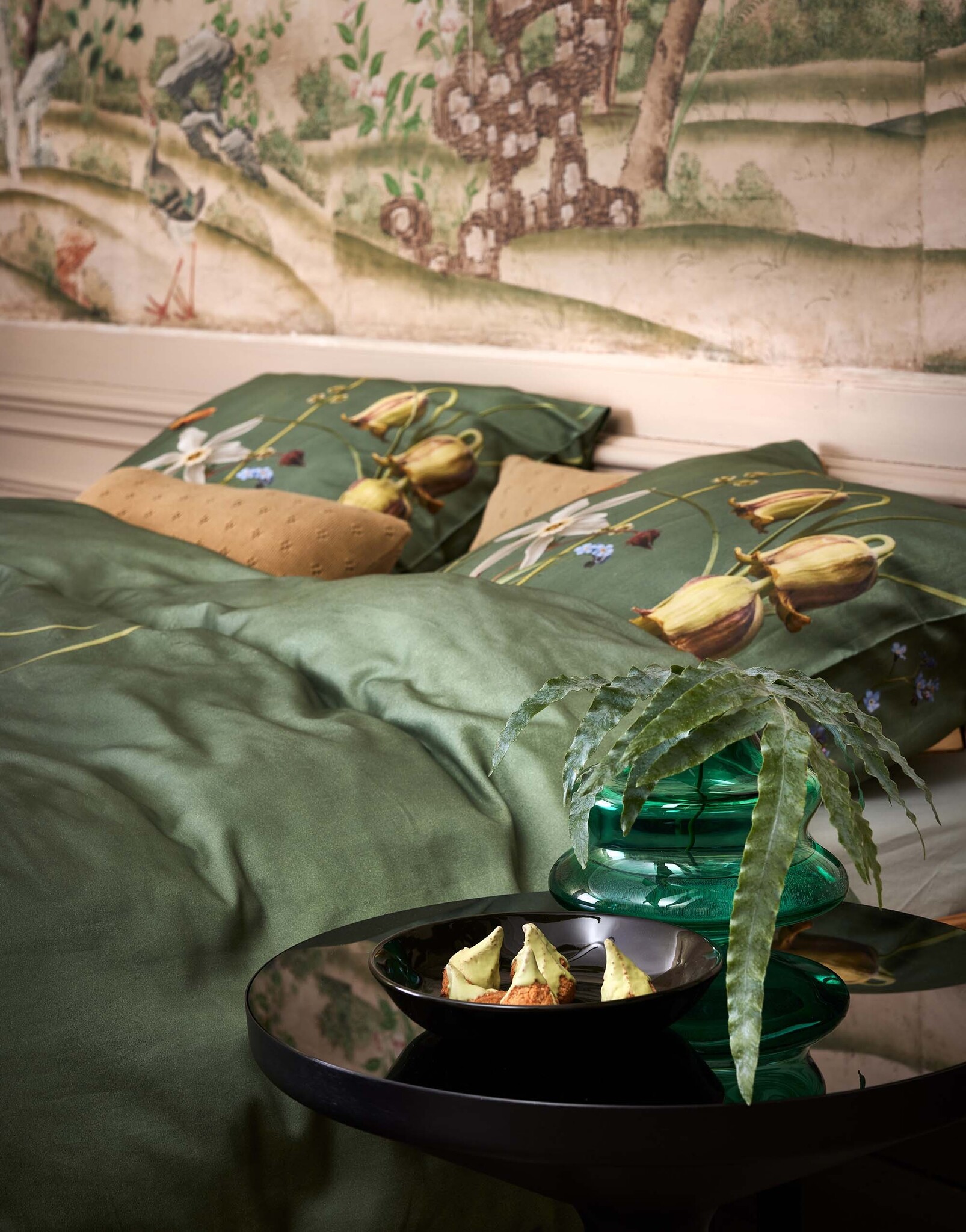 De groene kleur en het verfijnde bloemen & planten dessin van de Essenza Ficaria collectie brengen de natuur op een subtiele wijze naar binnen. De levendige tinten en het delicate patroon zorgen voor een frisse en rustgevende sfeer in uw slaapruimte.