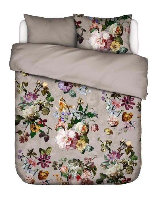 De rustige steenkleurige tint van dit exclusieve Fleur dekbedovertrek van ESSENZA is het perfecte canvas voor de romantische en schilderachtige bloemen van de Hollandse Meesters. Ideaal voor zwoele zomernachten! Het dekbedovertrek is gemaakt van zachte en soepele katoen satijn, voor ultiem slaapcomfort. De achterzijde is effen steenkleurig.