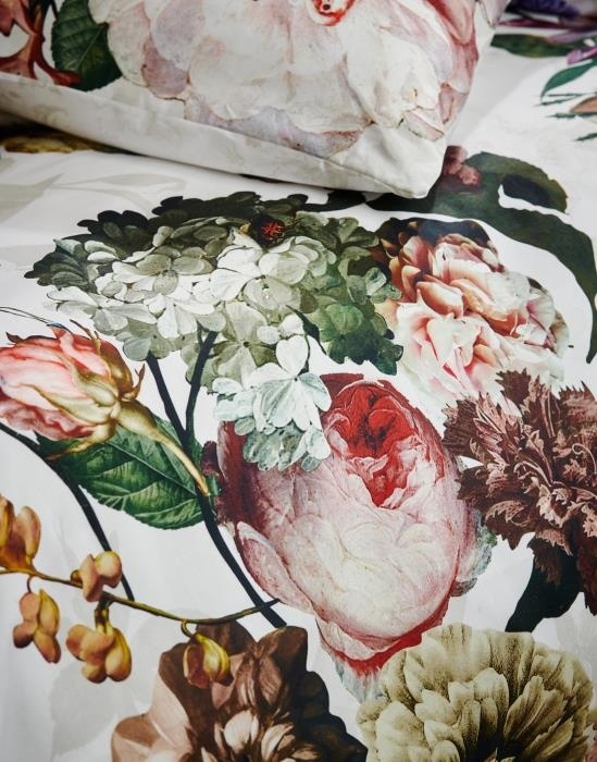 Wie van bloemen houdt kiest dekbedovertrek Fleur. In deze witte uitvoering schittert de kleurrijke bloemenprint meer dan ooit. En wist je dat de bloemen geïnspireerd zijn op de stillevens van de Hollandse meesters? Draai 'm om en je hebt een wat meer subtiele look. Want de achterzijde van dit zachte katoen satijnen dekbedovertrek is wit met een schaduwspel van bloemen en heeft door de stof een prachtige subtiele glans.