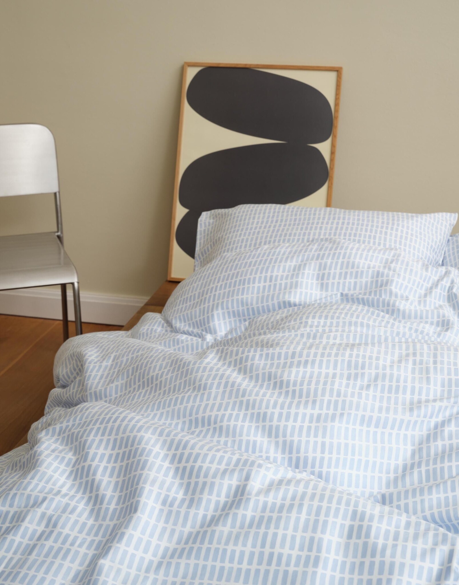 - Grafisch dessin in rustige blauwe tinten die slaapkamerrust versterken.