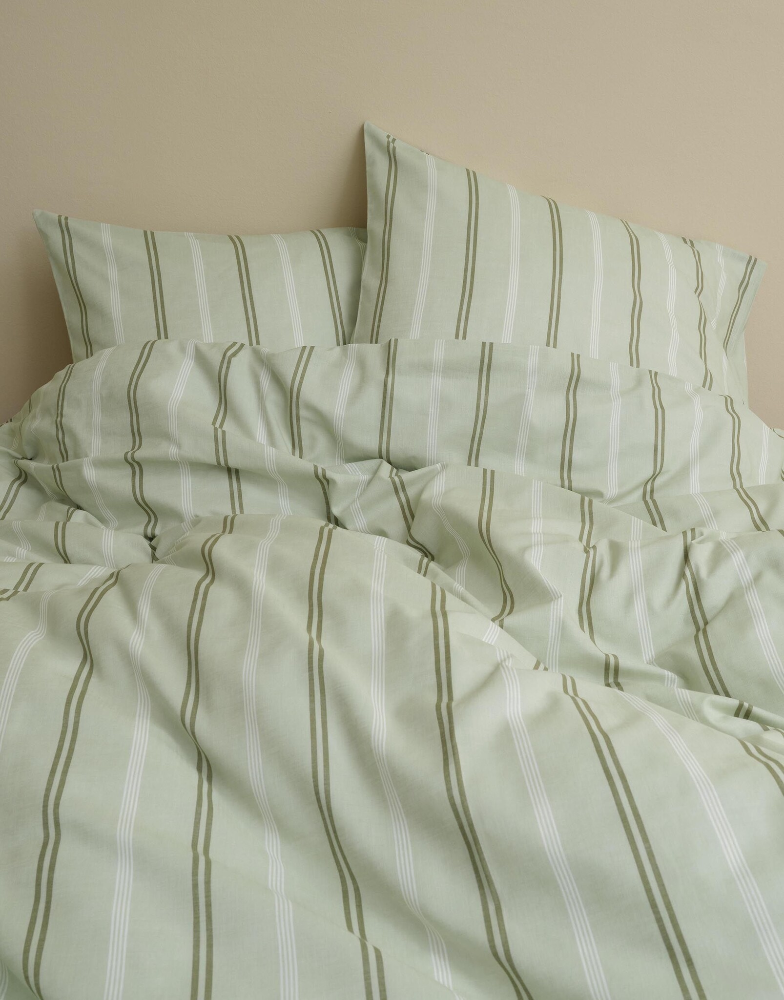 Het Olin overtrek onderscheidt zich door hoogwaardige materialen en doordachte afwerking: de katoenen stof voelt aangenaam tegen de huid, ademt goed en blijft mooi na veelvuldig wassen. Het rustige strependessin en de kleur Calm sage geven rust aan je slaapkamer en passen moeiteloos bij zowel moderne als klassieke interieurstijlen. Dankzij de royale afmeting is dit dekbedovertrek perfect voor een Lits-jumeaux XL (260x220) bed — ideaal voor koppels die extra ruimte willen.