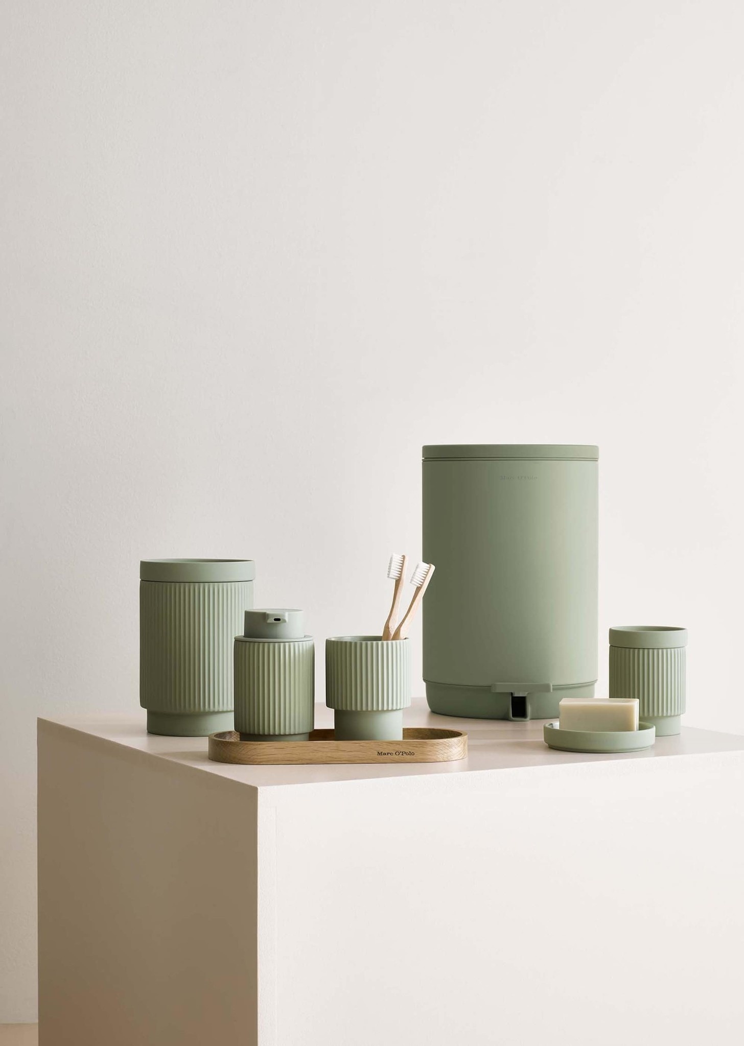 The Wave Opberg bakje L van Marc O'Polo in de kleur Light Green is gemaakt van Steen heeft de maat 12x12x17,5cm