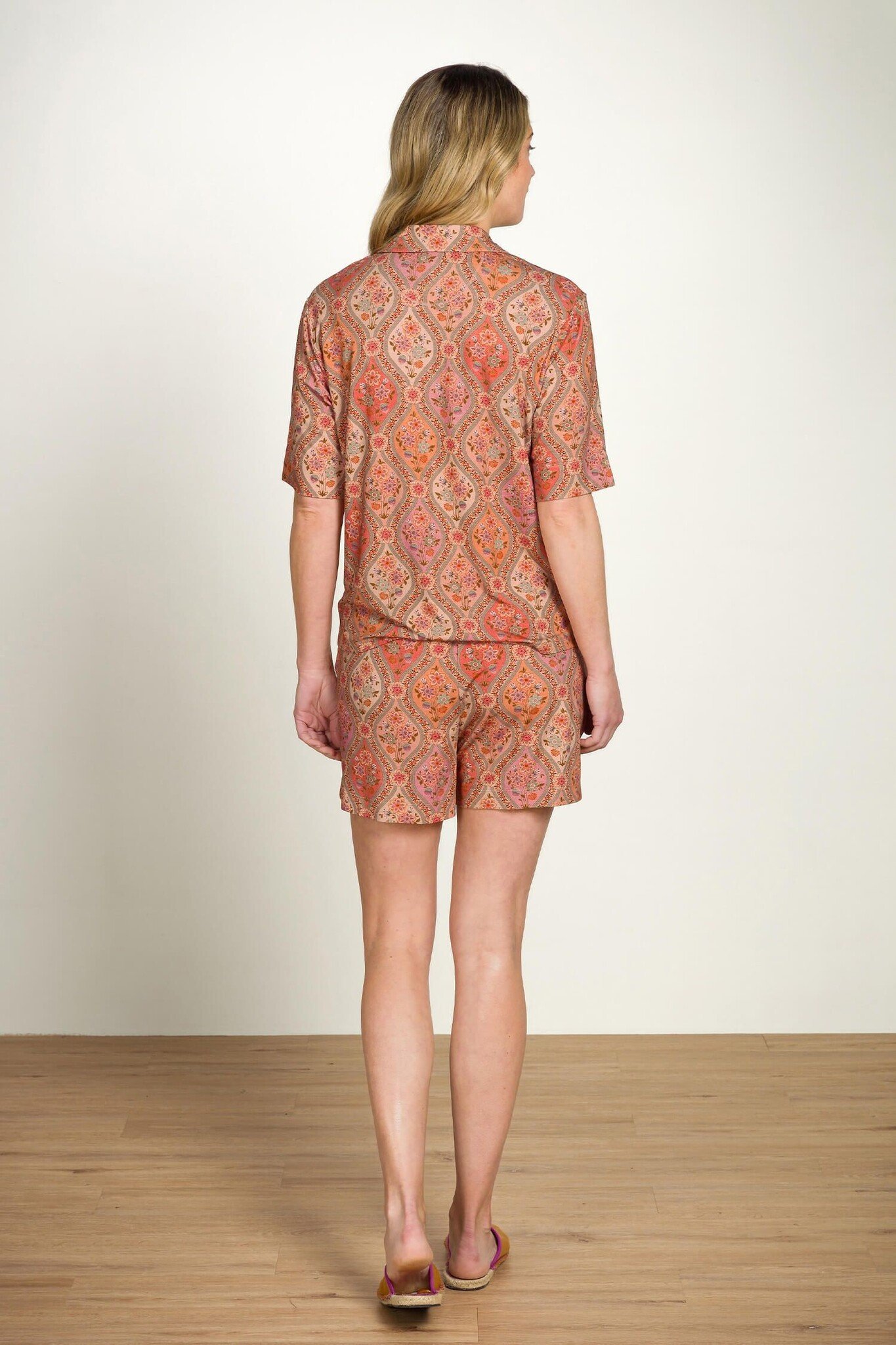 Draag de Ornamento Orange short met een bijpassend topje of een zachte dames badjas of heren badjas voor extra comfort. Maak je slaapkamer compleet met een kleurrijke dekbedset of een overtrek in bijpassende tinten; denk aan dekbedovertrek en dekbed set van Pip of Essenza. Voeg een sprei of spreien toe als finishing touch en kies kussens en sierkussens om het geheel af te ronden. Voor de badkamer kun je het thema doortrekken met handdoek, badmat of een wc-mat / toiletmat in bijpassende kleuren.