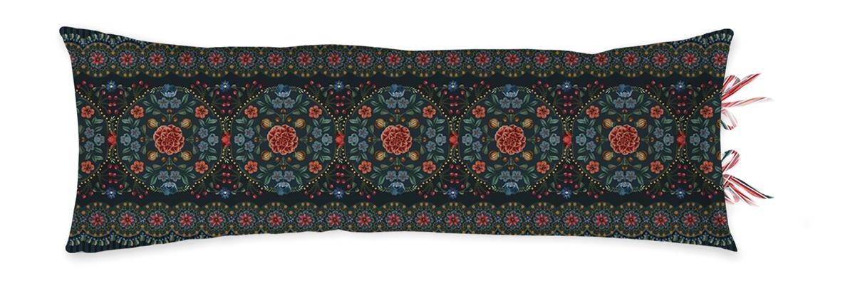 Sierkussen Forest Carpet bestaat uit een prachtige print van winterse bloemen en bessen en symmetrische vormen. De achtergrond van het kussen is diepblauw. De achterkant heeft een tonale horizontale streep en een unieke striksluiting. Hierdoor kun je beide kanten gebruiken. Dit geeft een leuk mix-and-match effect op je bed. Het sierkussen is gemaakt van brushed twill, 100% katoen, 188 TC. Percal is een fijn geweven katoen van hoge kwaliteit. Het kussen wordt geleverd inclusief polyestervulling. Het kussen is 30 x 90 cm. Het sierkussen kan gewassen worden tot 60 graden, is geschikt voor de wasdroger en kan matig heet gestreken worden.
