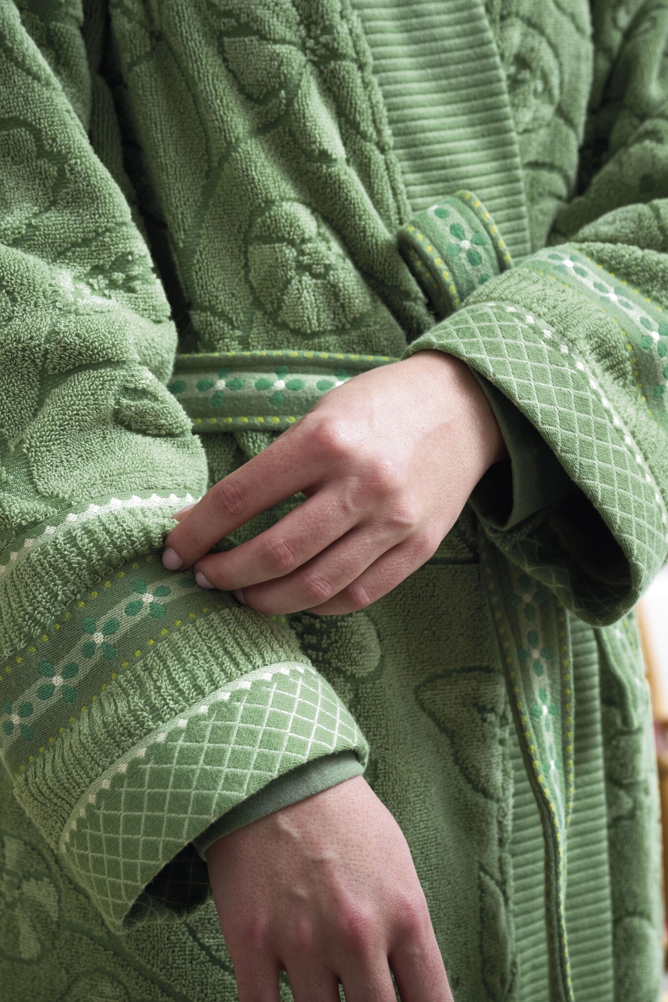 Ervaar luxe en comfort met de Pip Studio Jasmin Jacquard Badjas in een prachtige groene kleur. Deze badjas is een perfecte aanvulling op uw collectie badjassen dames en biedt een stijlvolle manier om te ontspannen na een lange dag.