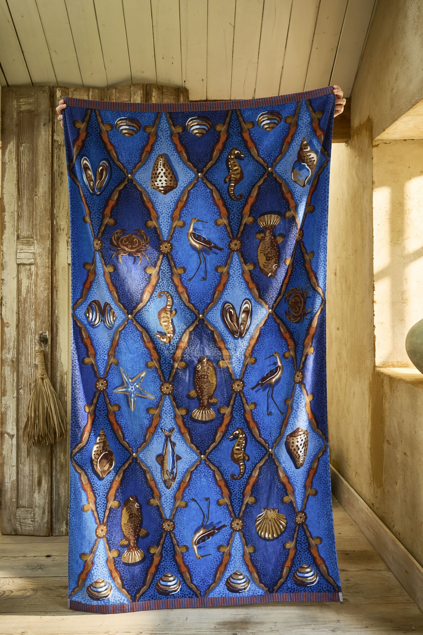 De Pip Studio Little Sea Beachtowel Blauw 100x180 cm is een stijlvol en royaal strandlaken dat direct opvalt door zijn opvallende patroon en diepe blauwe tint. Dit strandlaken combineert praktische functionaliteit met het speelse design waar Pip Studio om bekendstaat, waardoor het een perfecte keuze is voor de zomerdagen aan zee, bij het zwembad of voor gebruik thuis na een heerlijk bad.
