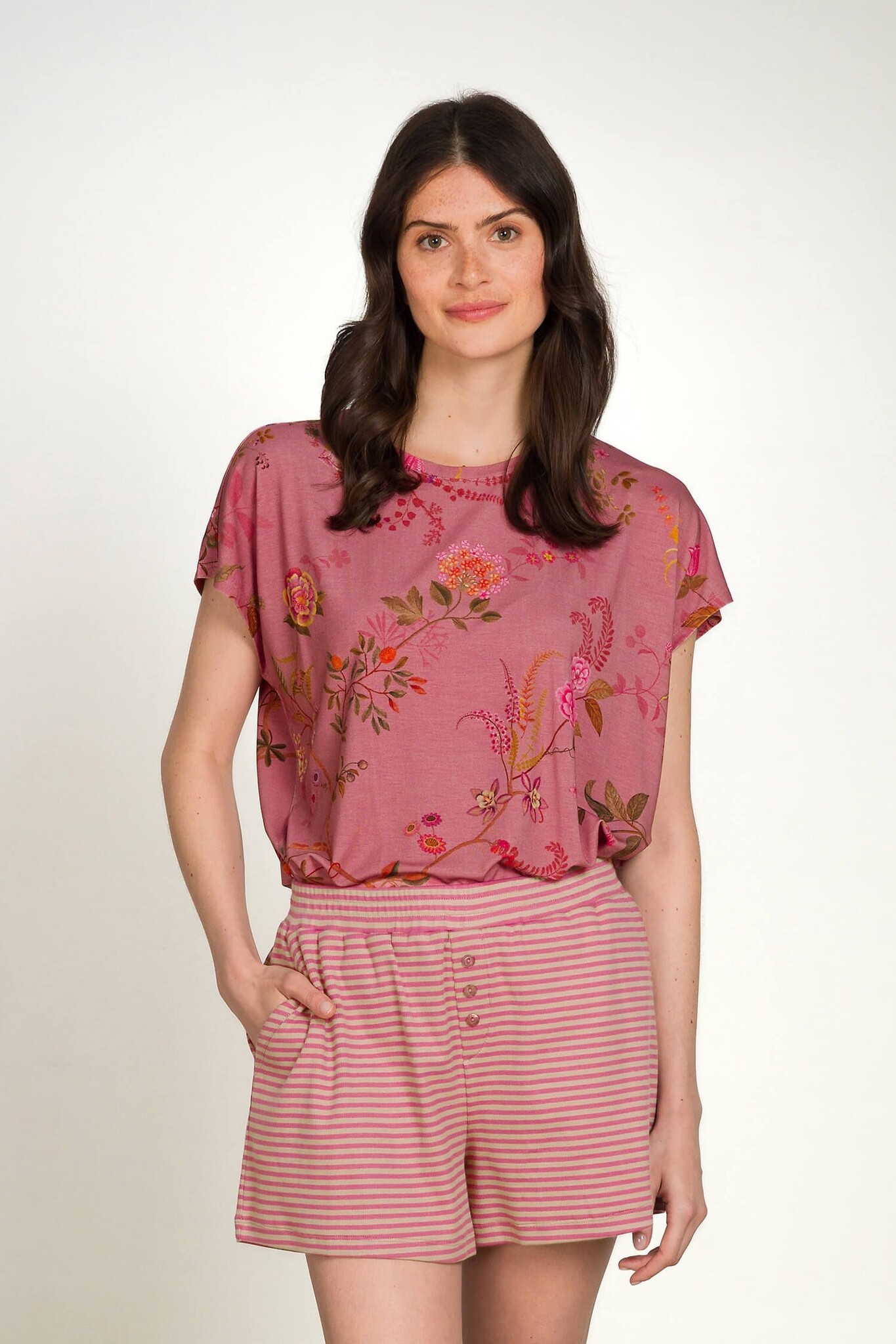 Pip Studio Tatum Short Sleeve Top Bodhi Flower Dpink XXL