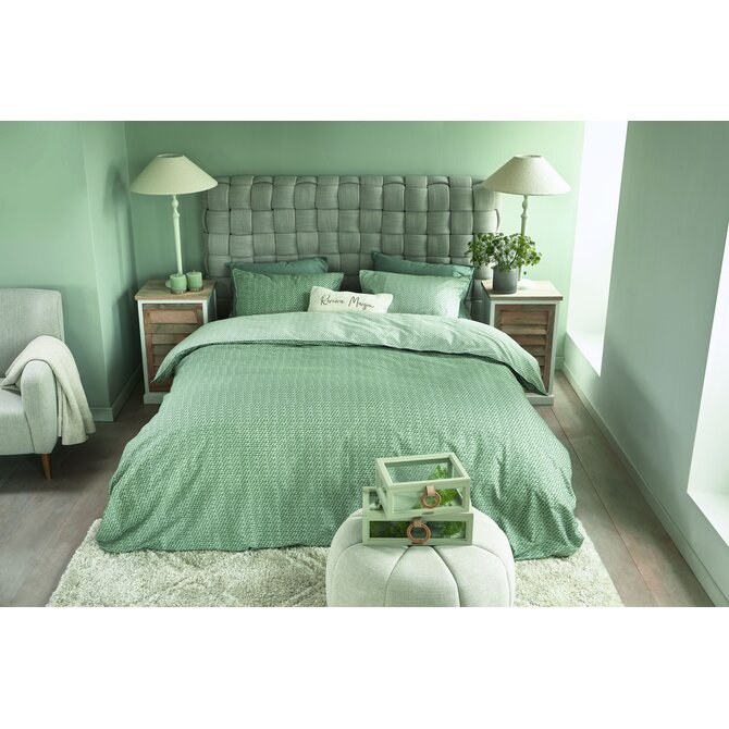 Voor een complete bedset kun je dit dekbedovertrek combineren met een bijpassend hoeslaken en een zachte molton of matrasbeschermer. Voeg een zachte sprei en een paar sierkussens toe om textuur en diepte te creëren. In de badkamer kun je de groene tint terug laten komen met bijpassende handdoeken en een badmat of wc-mat. Zoek je contrast of juist een luxe mix? Bekijk complementaire collecties van pip studio, essenza of vandyck.