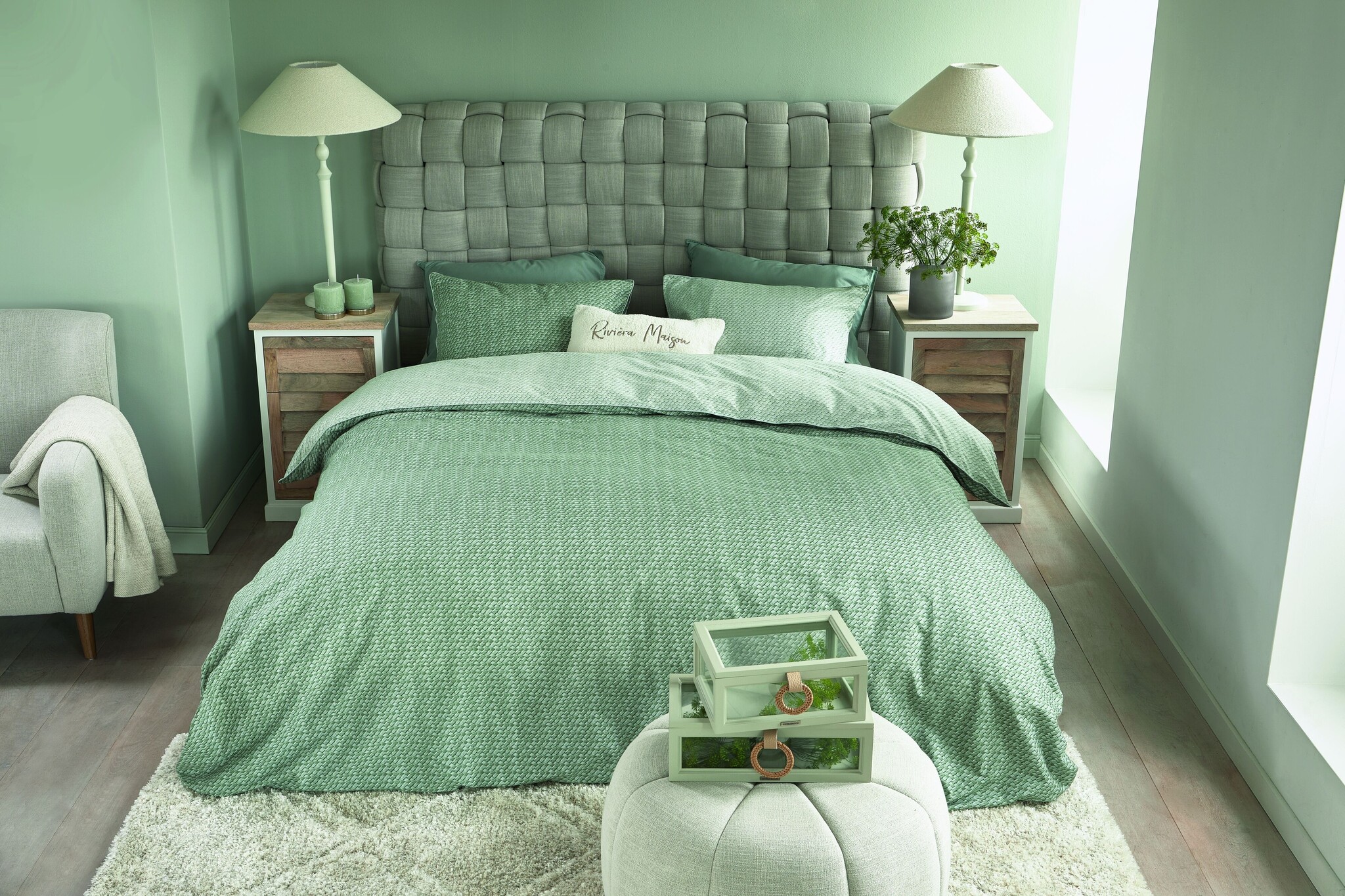 - Product: Rivièra Maison Dekbedovertrek Bambu Groen 240x200/220 cm