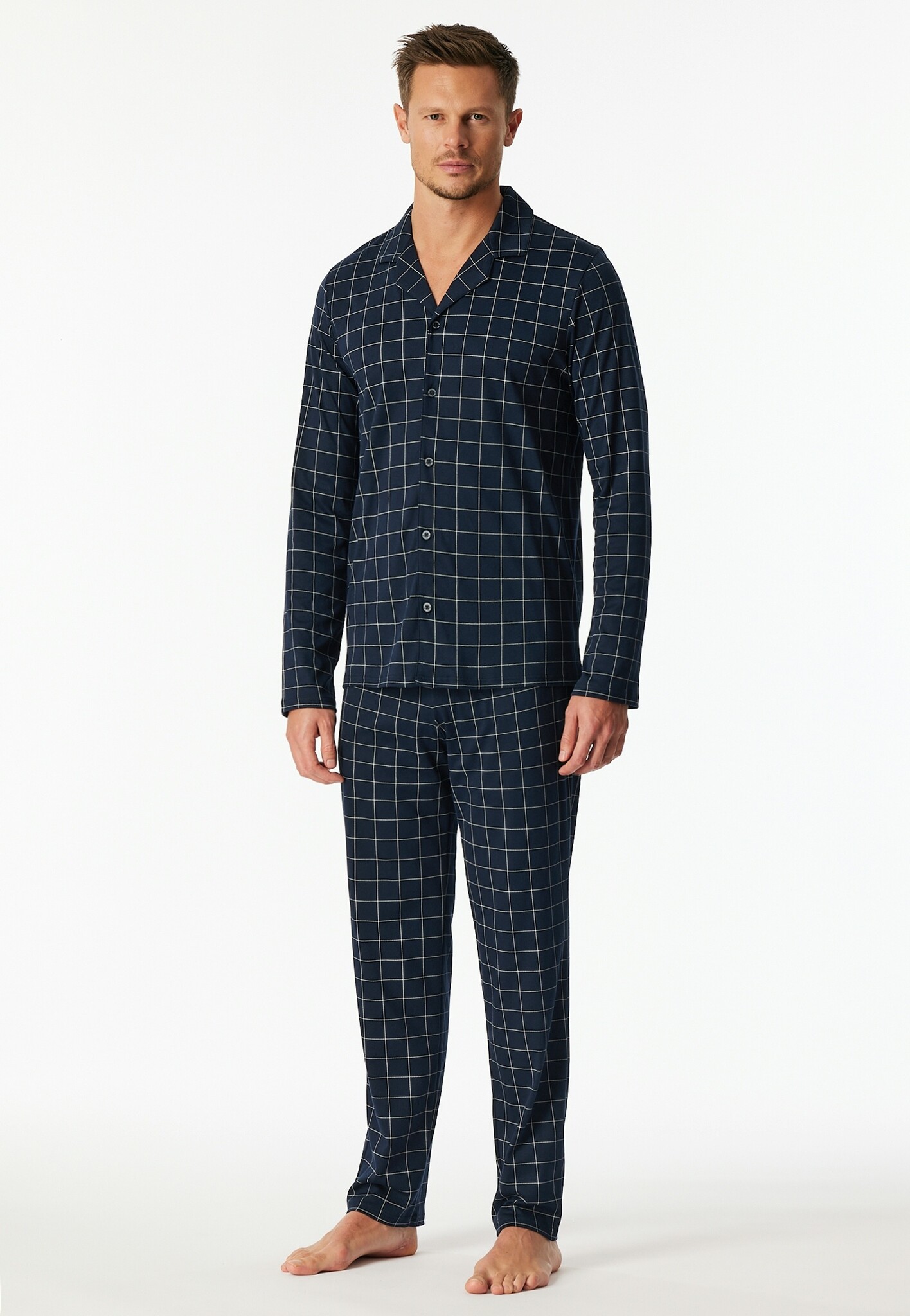 De Schiesser Heren Pyjama Long nightblue 183176 48/S is de perfecte keuze voor heren die op zoek zijn naar comfort en stijl tijdens hun nachtrust. Deze pyjama, uitgevoerd in een elegante nachtelijke blauwe kleur, biedt ultieme zachtheid en warmte dankzij het hoogwaardige katoenmateriaal. Het ruitdessin voegt een tijdloze charme toe, waardoor het een must-have is voor elke garderobe.