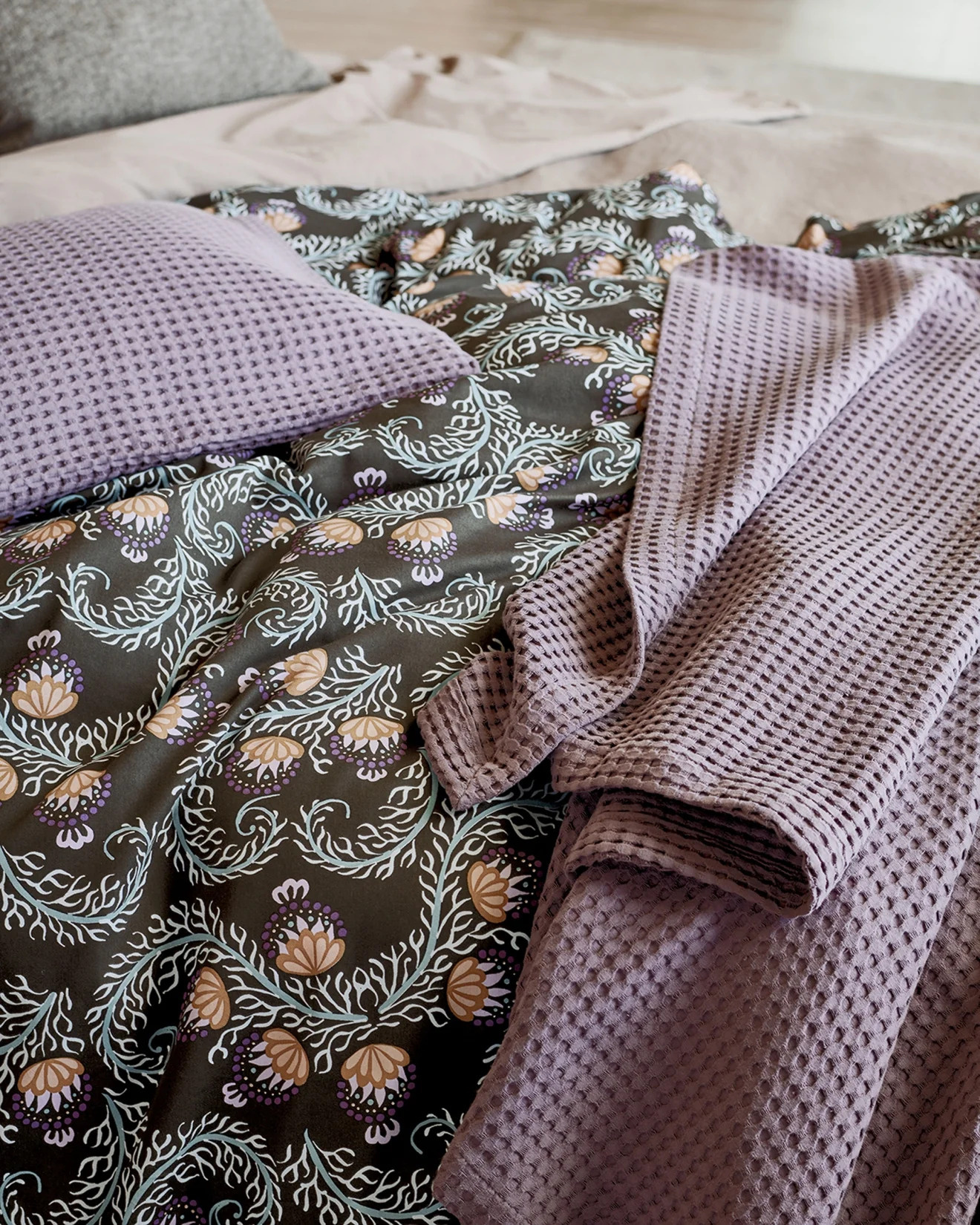 Vandyck Eclectic multi dekbedovertrek heeft kronkelende takken en vrolijke bloemen in blauw, oranje en paars op een diep donkerbruine achtergrond. De achterkant van het dekbedovertrek en de kussens hebben dezelfde print. Omarm de levendige kleuren en botanische charme terwijl je elke nacht omhuld wordt door stijl en comfort van het Eclectic multi dekbedovertrek van Vandyck. Gemaakt van 100% katoen-satijn.