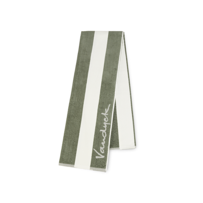 De Vandyck Palma Beach Towel salie 100x200 is een royaal, strependesign strandlaken in een zachte saliegroene tint. Dit hoogwaardige strandlaken van Vandyck combineert comfort met duurzaamheid en is ideaal voor een dagje aan zee, bij het zwembad of om thuis te gebruiken als oversized handdoek.